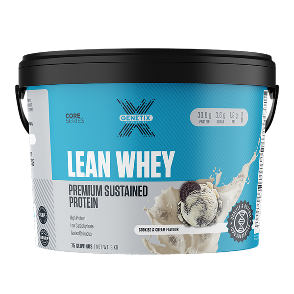 Lean Whey uses 3 individual proteins with their own amino acid profile and varying digestive rates to feed muscles for hours with the most complete protein available. Each serve has a whopping 32.1g of protein, 2.1g of carbohydrate and only 0.6g of fat per serving.